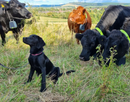 herd. When the Dexters are grazing away from the home farm, they wear NoFence GPS collars, which allow her to track them remotely at their various sites. The collars come with an app where she can see where they are grazing, how they are behaving, and receives an alert if one ventures outside its virtual boundary. This technology also enables her to graze more remote or challenging sites. The herd is calm around people and dogs, which makes relocating them between sites much easier.