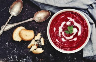 A colourful vegetarian soup recipe.