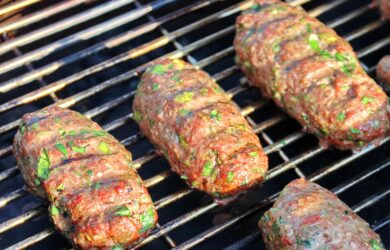 These middle eastern lamb koftas are delicious served in a pitta or flatbread with some crunchy lettuce and a tomato salad. A yogurt sauce (like tzatziki) really elevates this simple lamb dish.