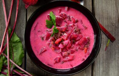 Quick and easy to prepare, this deep red soup of pureed beetroot and potatoes makes a stunning first course. This dish requires a microwave and…