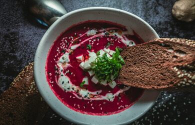Borscht is a sour soup commonly consumed in Eastern Europe and across Russia.