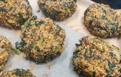 These simple crispy quinoa patties are so versatile. They’re a great meatless option that even meat eaters will love. Play around with your favourite vegetables…