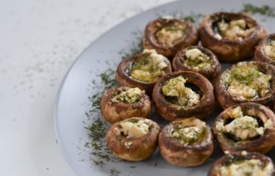 These stuffed mushrooms are simple to put together and easily adapt to your favourite cheeses