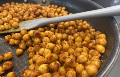 This recipe works both with pan fried chickpeas than with the baked ones. They are the perfect topping for a salad.