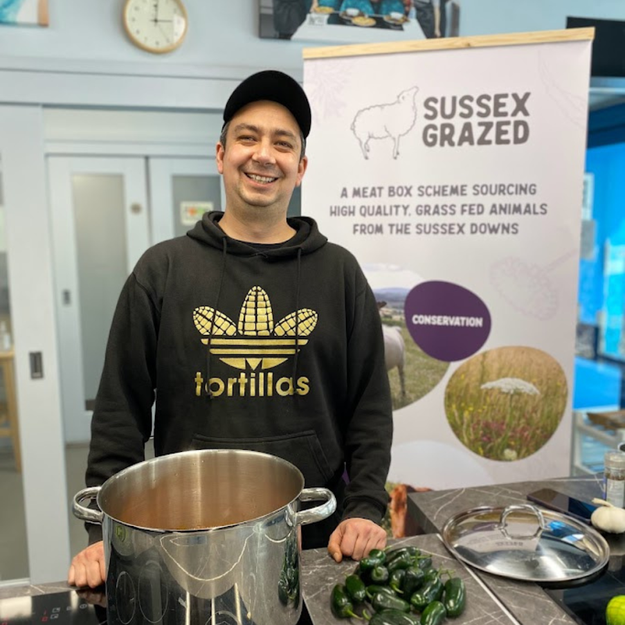 Jethro Carr is a Cookery Leader at our Community Kitchen & runs the pop up cookery school Kitchen Academy. He has a simple and friendly approach to exploring global cuisines and enjoys cooking with recipes that are down-to-earth and fun. He has taught in schools, universities, festivals and events nationwide. Teaching people young and old to cook, he performs cookery demonstrations, master classes, workshops, gastronomic experiments and corporate team-building events. He has run cookery schools with Hay Festival, Kew Gardens, The Olympic Park, Abergavenny Food Festival, PGL Cookery Holidays, BBC and Blenheim Palace.